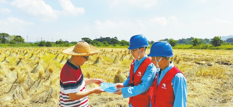 连日来,广东电网公司佛山高明供电局党员服务队深入田间地头,为水稻客户提供安全用电检查服务,确保用电设备健康运行。 (刘永忠 杨青 严细和 摄影报道)