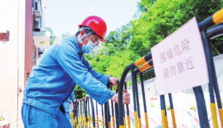 深圳供电局工作人员做好山体滑坡防护安全保护措施。 黄志伟 摄
